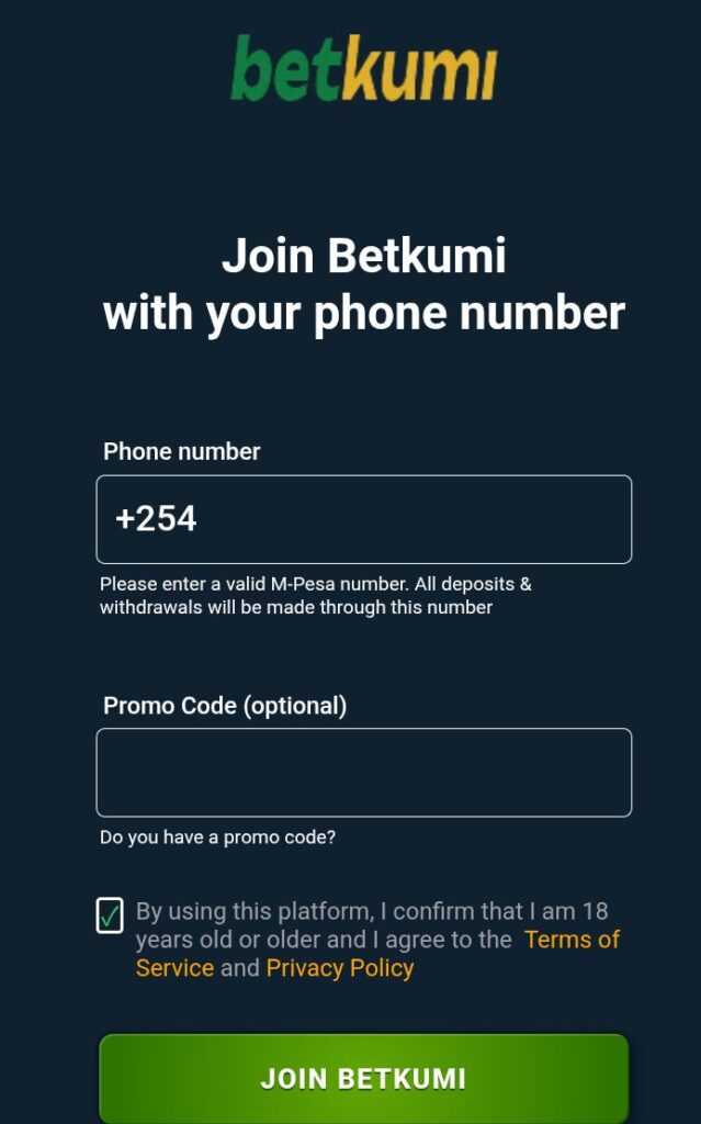 To register account with betkumi kenya you need a computer, smartphone, laptop or a tablet access to internet and follow below steps