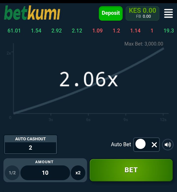 All the crash games under betkumi kenya operate in same mode where the odd raise from 1 to maximum.see marakumi reviews