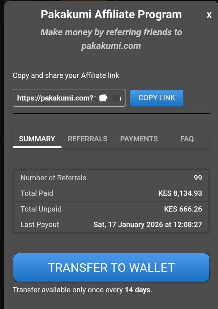 Pakakumi comes with an online affiliate program where it gives you a chance to earn through inviting active players and whenever they play you earns a 30% commission on the played amount.