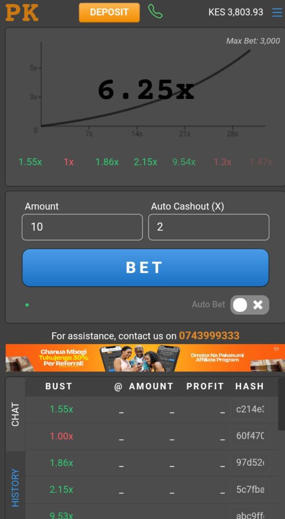 Having loaded your account with enough balance it’s time to enjoy your number one crash game in Kenya