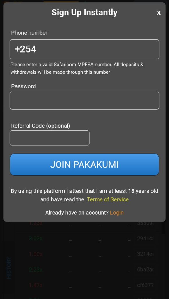 To create account under pakakumi platform is absolutely free all you need is a phone and access to internet then follow below outlined steps;