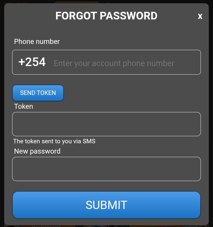 On the reset password page you will be required to enter your phone number one you used during registration then click on token request button.A token will be sent to you via SMS enter it in the slot provided ,Enter your new password and click on submit to complete the process.