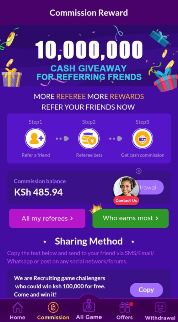 This program requires you invite as many as possible active client and for every play they make you earns yourself a withdrawable commission.