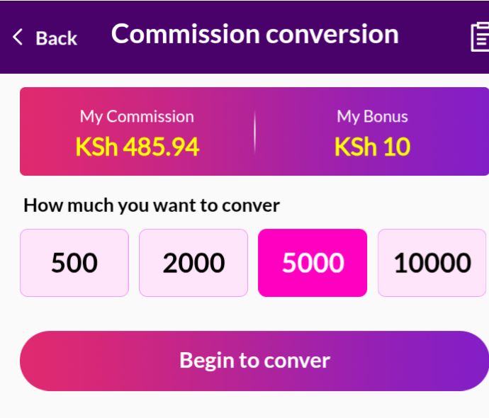 The least you can withdraw under this program is ksh 500 with a maximum of ksh 20,000 with no dairy limit.
