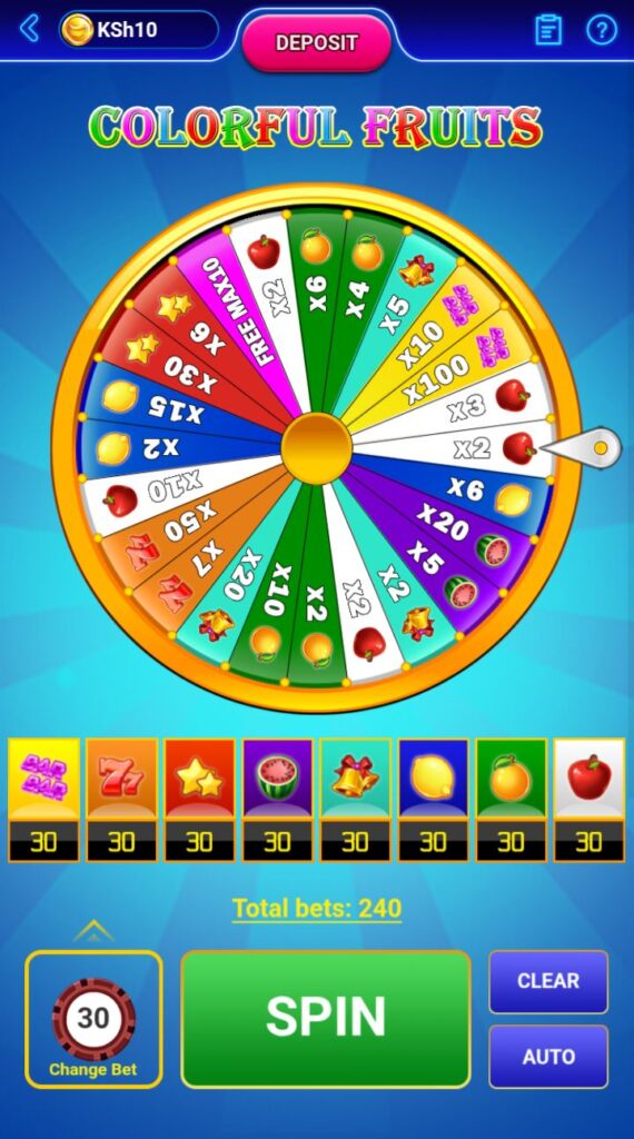 Under colorful fruits each item is placed for multiple times on a spin while and given a different multiplying odd