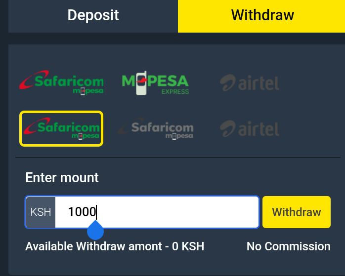 Withdrawal come after you have played your games and accumulated enough balance, where withdrawal are only through safaricom Mpesa only.